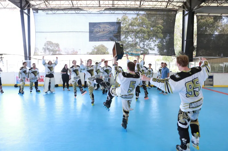University of Arizona faced off against Lindenwood University at The Rinks in Irvine, CA in the AA Division Championship Game at the 2023 National Collegiate Roller Hockey Championships.